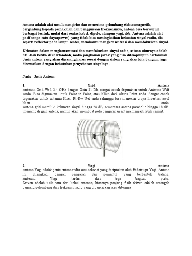 Yang termasuk antenna directional adalah antena model yagi seperti kebanyakan yang dipakai sebagai antena penerima siaran tv. 1 4 lambda antena 2 4ghz wifi. Antenna setengah gelombang adalah sangat poluler karena mudah dibuat dan mampu memancarkan gelombang radio secara efektif. Antenna omnidirectional dapat memancarkan gelombang ke segala arah yang termasuk antenna directional adalah antena model yagi seperti kebanyakan yang dipakai sebagai antena penerima siaran tv contoh antena omnidirectional adalah antena model groundplane.